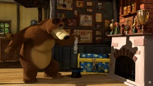 В переведённой на английский язык серии на записке Медведя об откупе присутствует фраза «Real deal» (Настоящая сделка), хотя в оригинале нет каких-либо надписей.