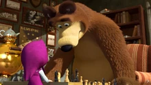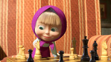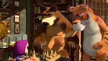 Укутав девочку, Мишка пытается найти выигрышную комбинацию, но ни у него, ни у Тигра не получается это сделать даже с помощью обучающих этой игре книг, и тогда Медведь предлагает другу сжульничать, спрятав обоих коней Маши у себя во рту. Однако и попытка обмана не срабатывает, кони всё равно оказываются на доске, и Маша снова выигрывает, после чего она предлагает сыграть в крестики-нолики, но результат оказывается тем же.