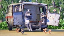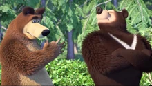 Вскоре в лесу происходит состязание между медведями, на которое в качестве зрителей были приглашены не только обитатели леса, но и животные, живущие во дворе дома Маши, а волки отвечают за медпомощь.