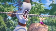 В ходе соревнований Зайка помогал Гималайскому медведю жульничать, а Маша, каждый раз замечая это, всячески исправляла ситуацию, выручая Мишку, а перед подъёмом на крутой склон и перед самым финишем ещё и подбадривала Медведя.